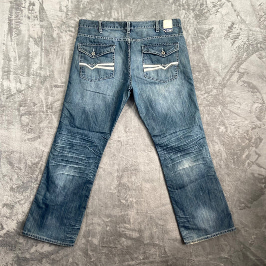 Helix No 56 Slim Bootcut Jeans Men's 38x32 Blue Denim Casual