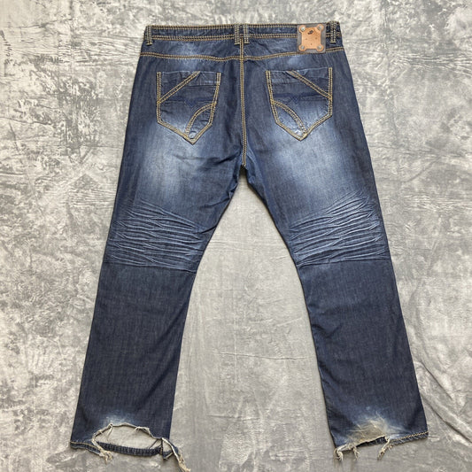 Lanzinno Jeans Men’s Size 46 Denim Blue Dark Wash Distressed