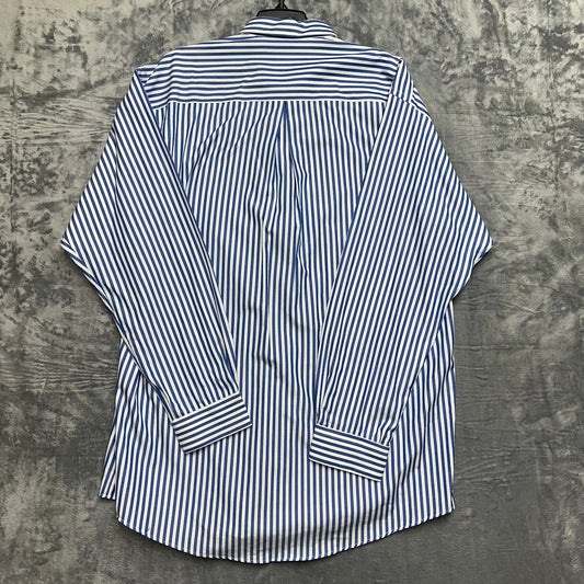Saks Fifth Avenue Men's Pinstripe Button Down Dress Shirt Size Large Blue White