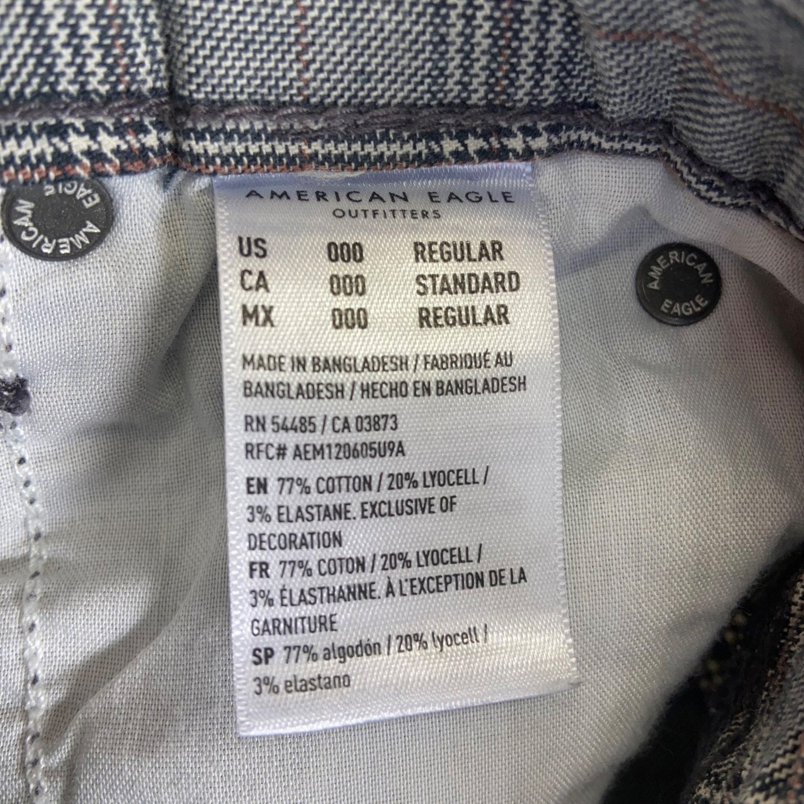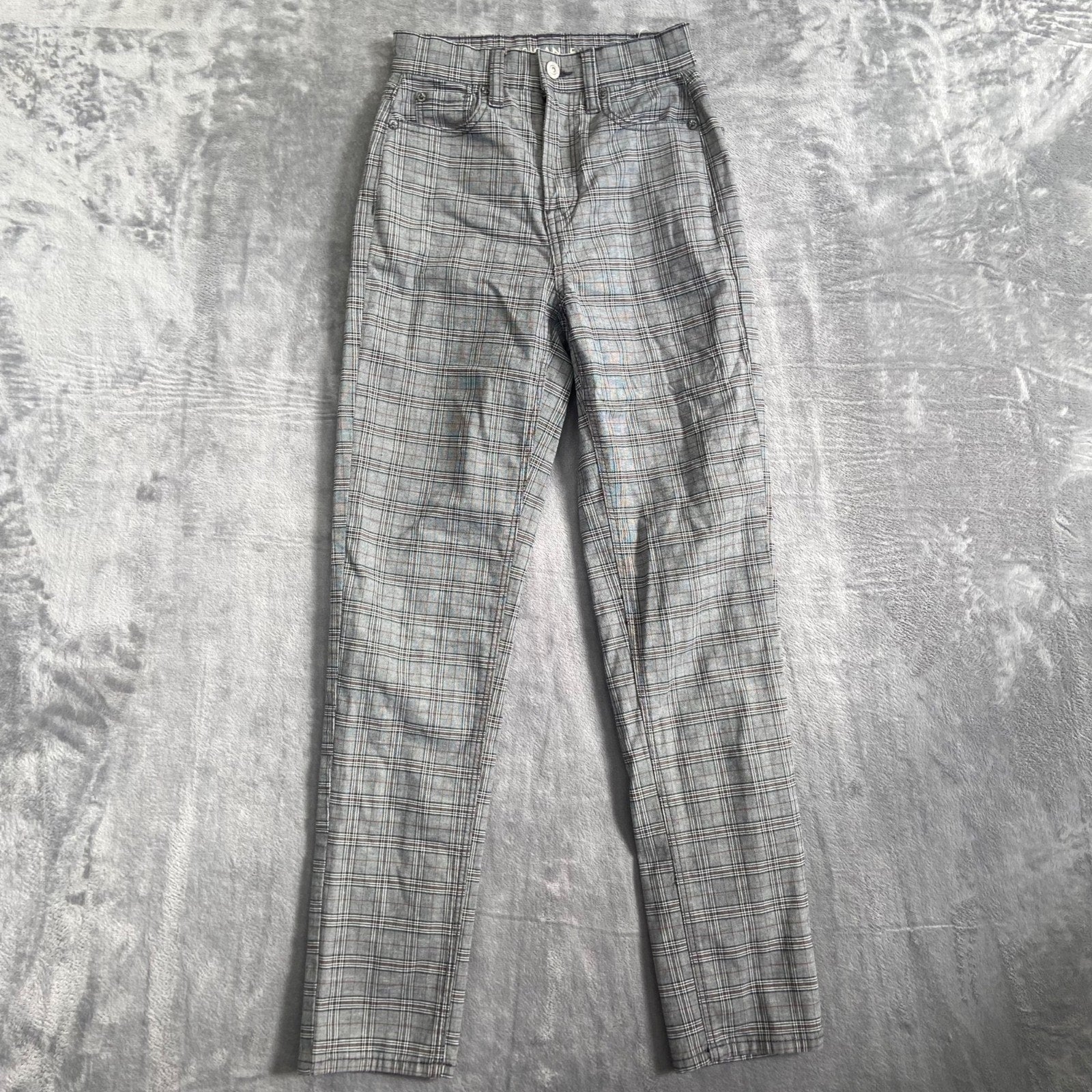 American Eagle Plaid Stretch Pants Women's Size 000 Gray Cotton Blend