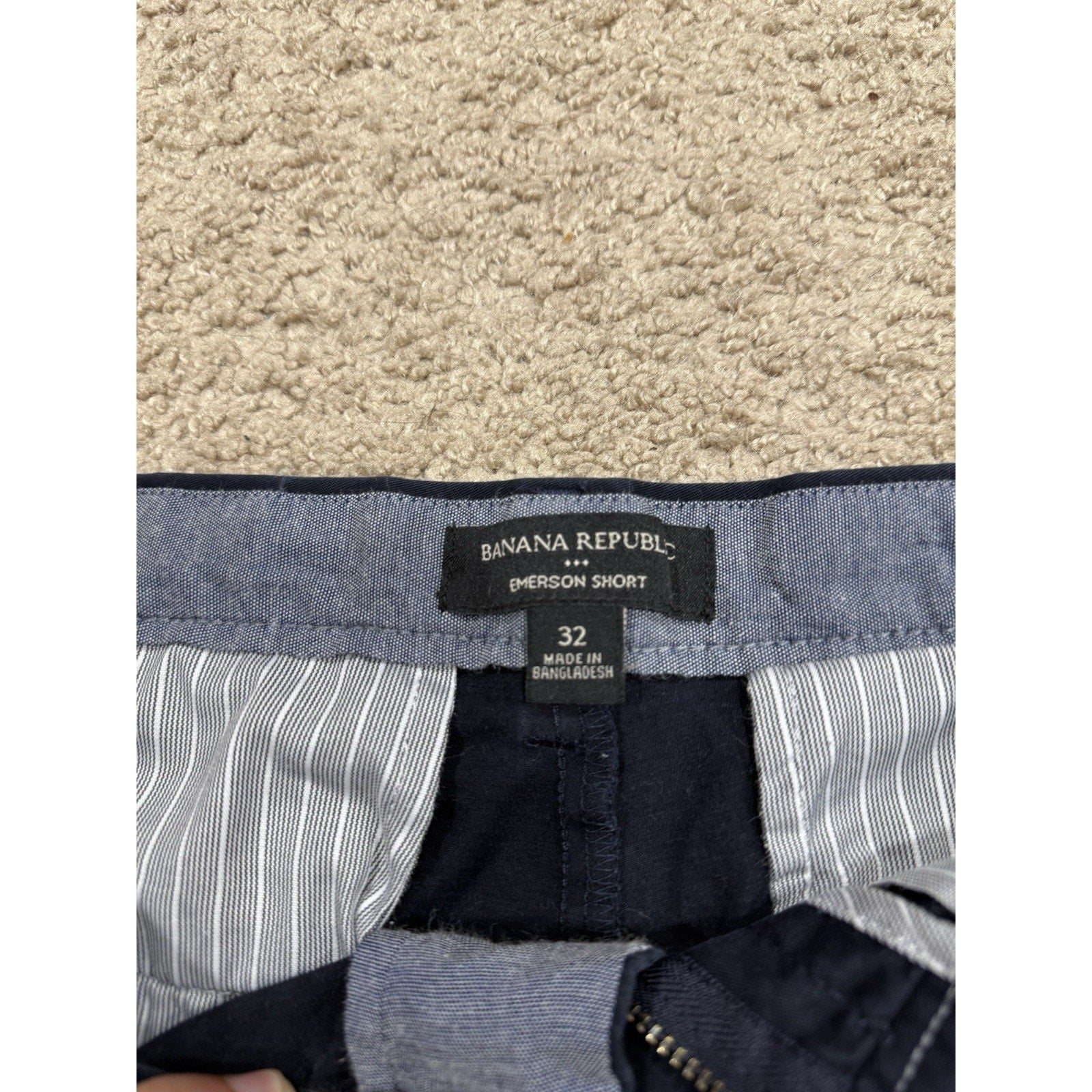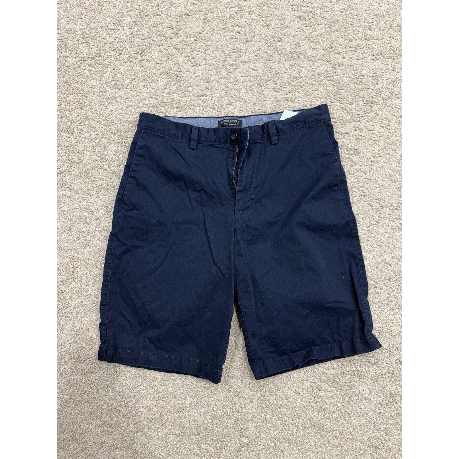 Banana Republic Emerson Chino Shorts Men's 32 Navy Flat Front Slash Pocket