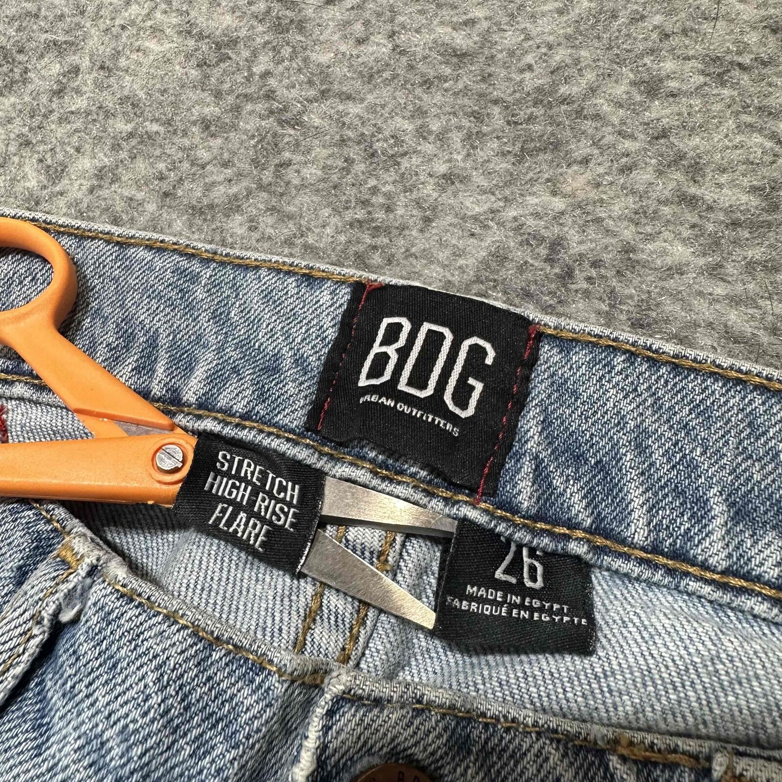 These trendy BDG Urban Outfitters jeans feature a flattering high rise and a chic flared style, perfect for making a fashion statement. The distressed look and light wash add a touch of casual cool to any outfit. Crafted from a comfortable stretch denim, these jeans are ideal for all-day wear.