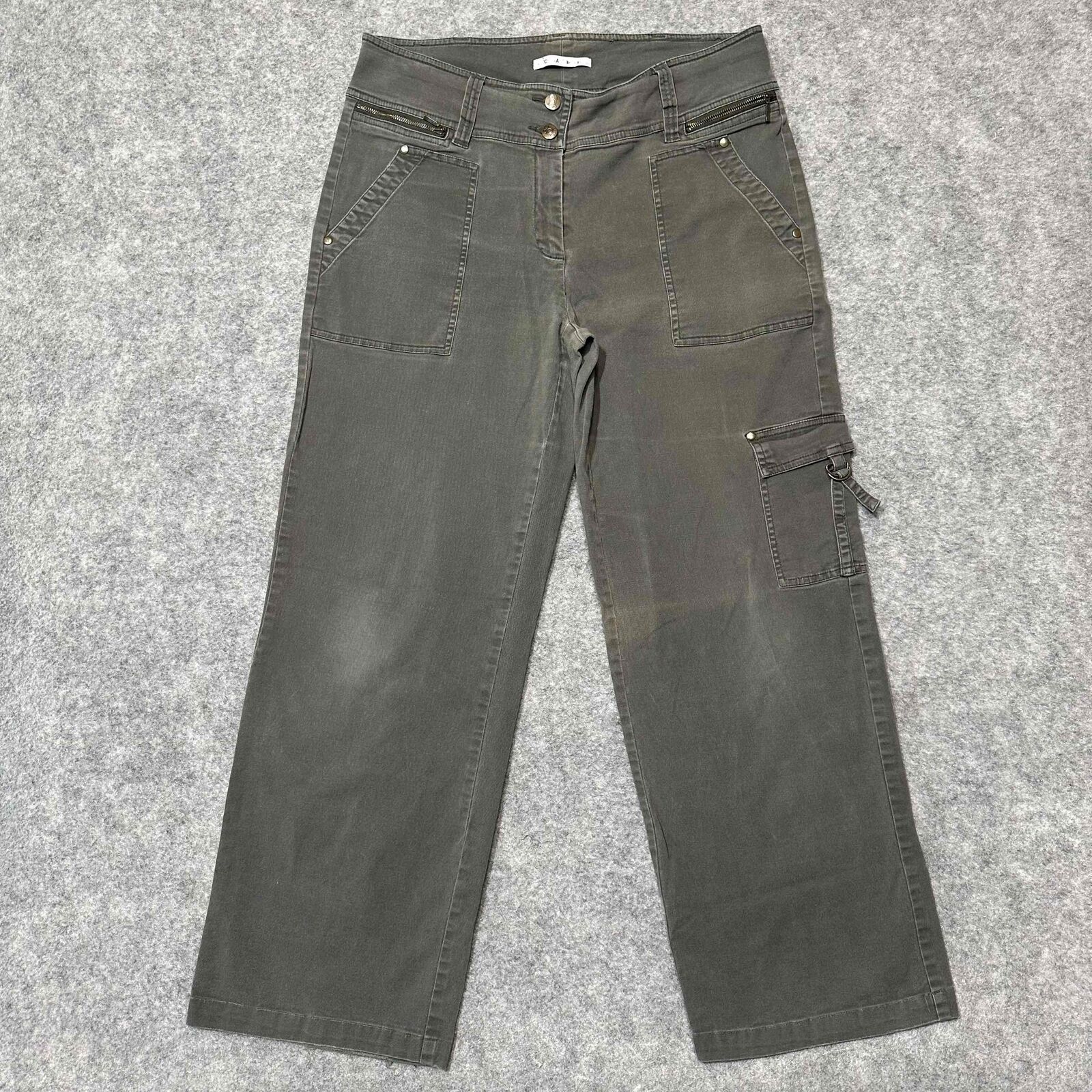 Step into style and functionality with these CAbi bootcut cargo jeans. Featuring multiple pockets, including cargo pockets, these jeans offer both a fashionable look and practicality. The zipper fly and button closure ensure a secure fit, while the bootcut silhouette flatters various body types.