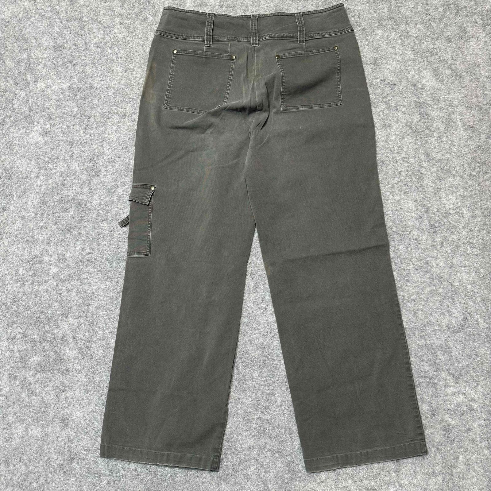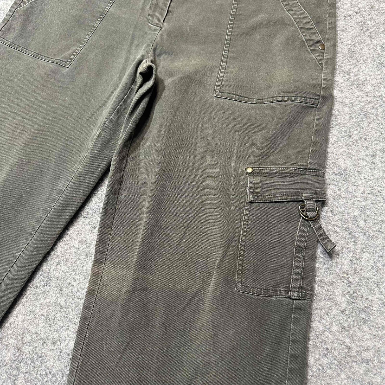 CAbi Women's Bootcut Cargo Multiple Pocket Jeans Size 12 Green Dark Wash Denim