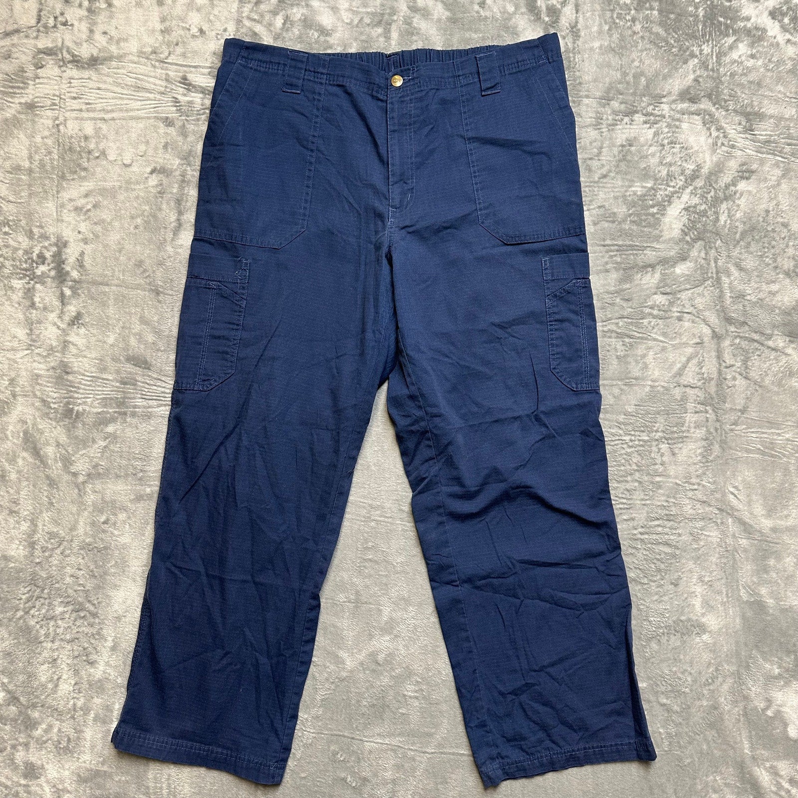 Discover a practical addition to your wardrobe with this pair of Carhartt carpenter pants in a striking blue hue. Sized XL, these pants feature a cotton blend construction, ensuring both comfort and durability. The waist measures 38 inches with a 30-inch inseam and an 11-inch rise, fitting a regular size type. Ideal for various occasions, this pre-owned item is in fair condition, showing signs of wear but still holding all the rugged charm and functionality Carhartt is known for.