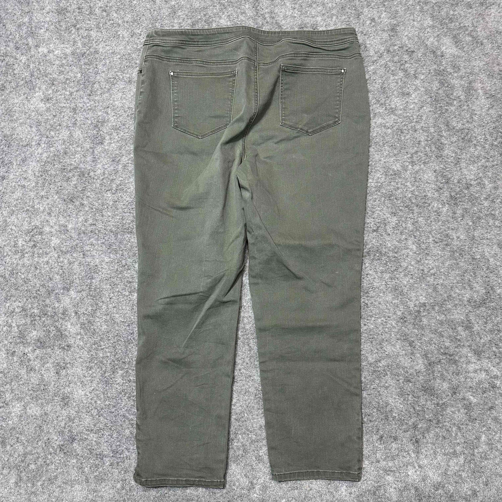 Elevate your casual wardrobe with these versatile and comfortable Chicos jeans. The olive green hue adds a unique touch to your outfit, while the slim ankle cut provides a flattering silhouette. Perfect for pairing with your favorite tops and accessories for a chic, effortless look.