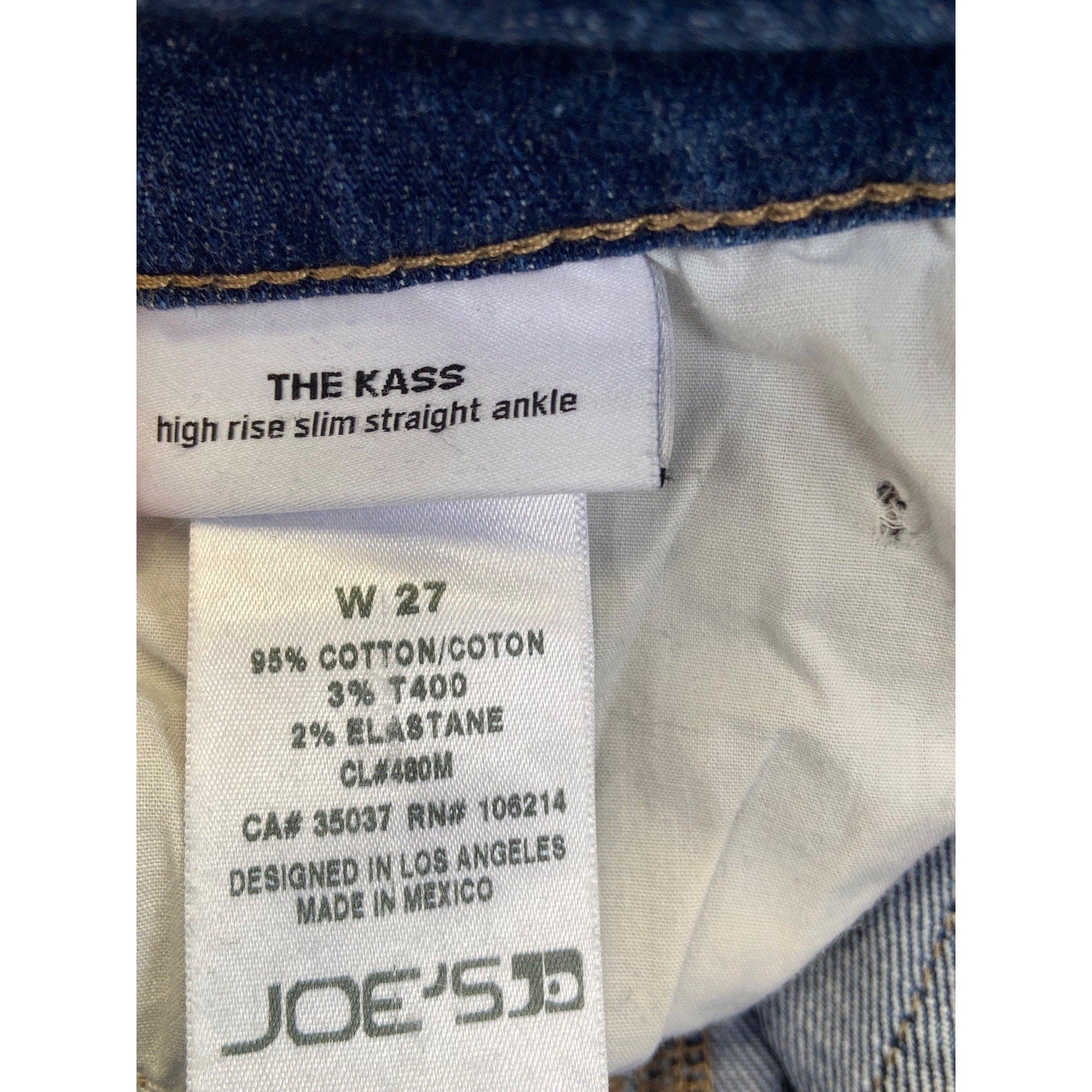 Joe's 'The Kass' high rise slim straight ankle jeans in dark blue denim. Made with a comfortable stretch fabric blend, these jeans offer a flattering fit and classic style. Designed in Los Angeles and made in Mexico.
