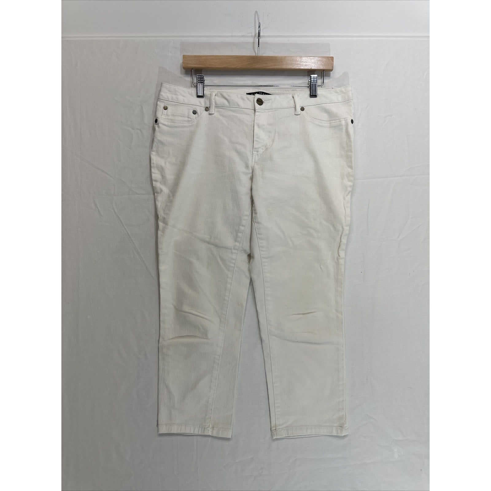 Max Jeans Women's Size 12 White Crop Denim Mid Rise Cuffed Stretch Jeans