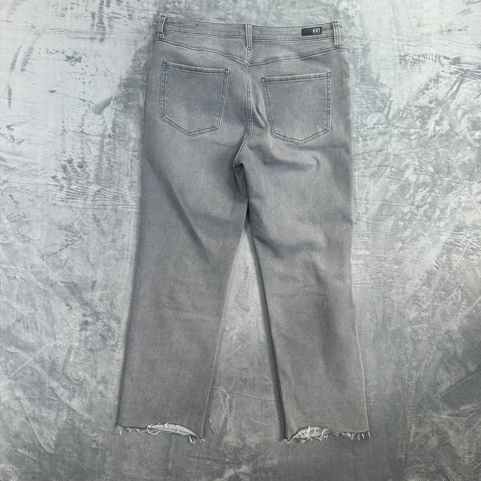 Kut from the Kloth Elizabeth ankle straight jeans in gray, size 16. High rise with a light wash and ankle length.