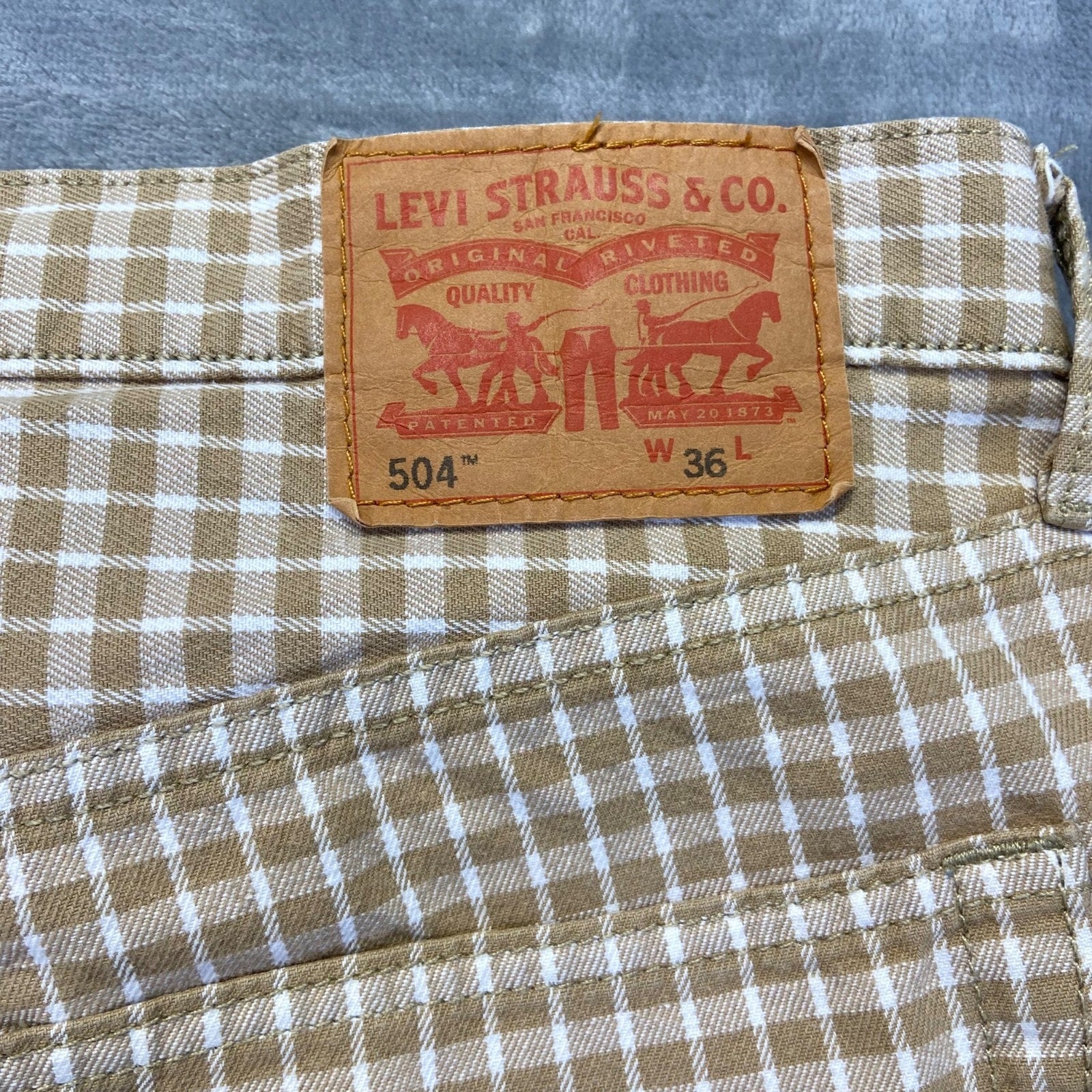Levi's 504 Regular Fit Shorts Men's 36 Beige Check Cotton Casual