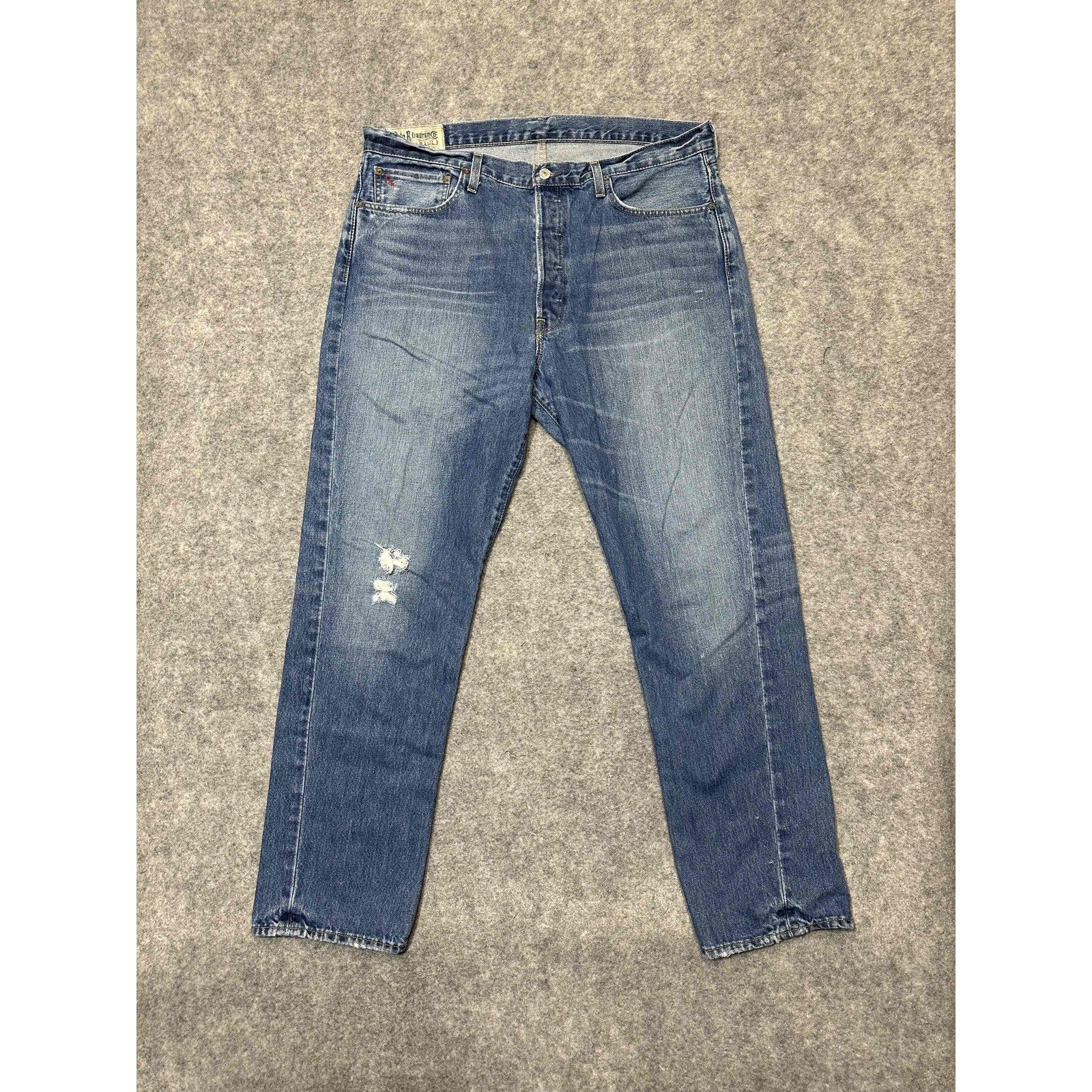 Polo Ralph Lauren Men's Distressed Straight Jeans Size 36x32 Blue Light Wash Denim