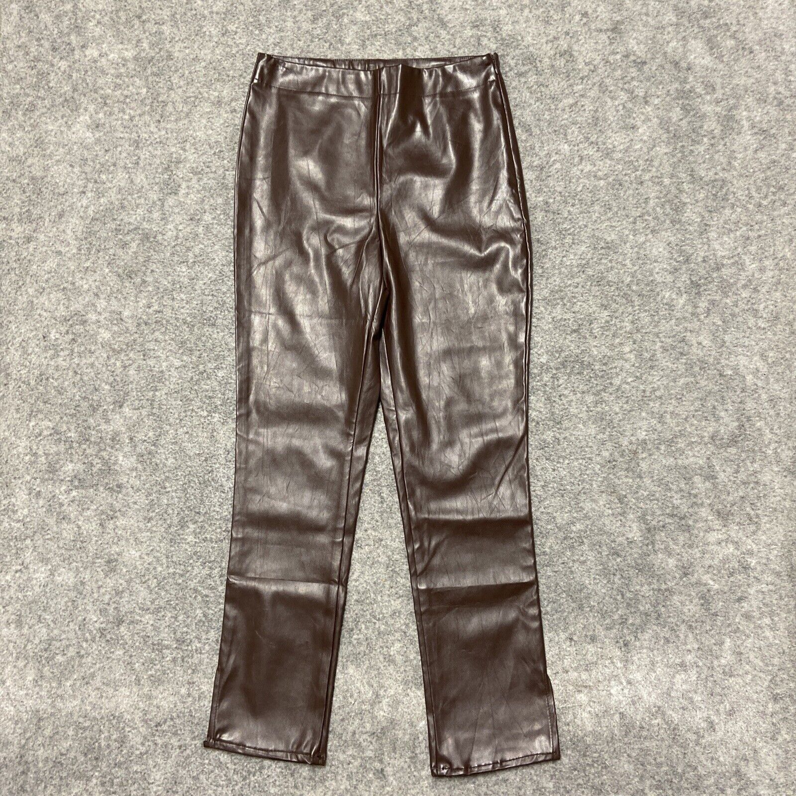 Suzanne Betro Faux Leather Leggings Women's Size M Brown Pull on Side Zip Pants
