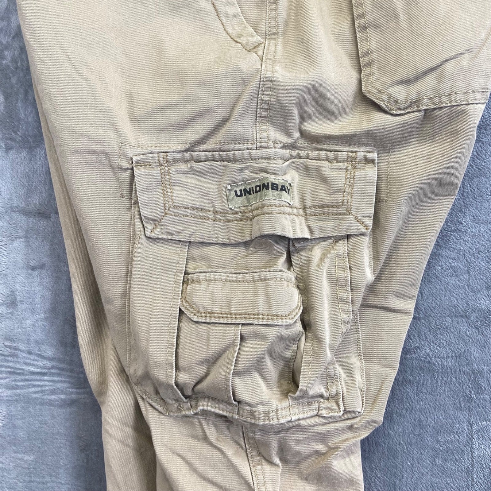 Unionbay Men's Cargo Pants in Khaki, size 40x30, featuring a straight leg style and cargo pockets.